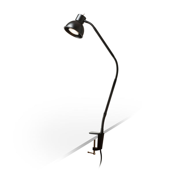 LED-Klemmlampe mit konischem Schirm und flexiblem Hals. Die Steuerung befindet sich am Clip der Lampe. Die maximale Spannweite des Clips beträgt 2,5 cm. Dreistufige Dimmfunktion.