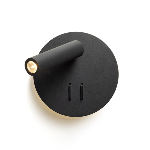Wand-LED-Leuchte mit Strahler, ergänzt durch indirekte Beleuchtung. Die Leuchte verfügt über zwei Lichtquellen, die separat mit Schaltern an der Basis der Leuchte gesteuert werden können.