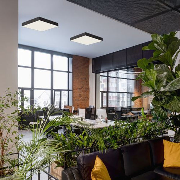 Deckenleuchte mit eingebauter LED und einem minimalistischen Rahmen. Die Leuchte verfügt über einen eingebauten Schalter zur Änderung der Farbtemperatur des Lichts (3000K, 4000K, 6500K).