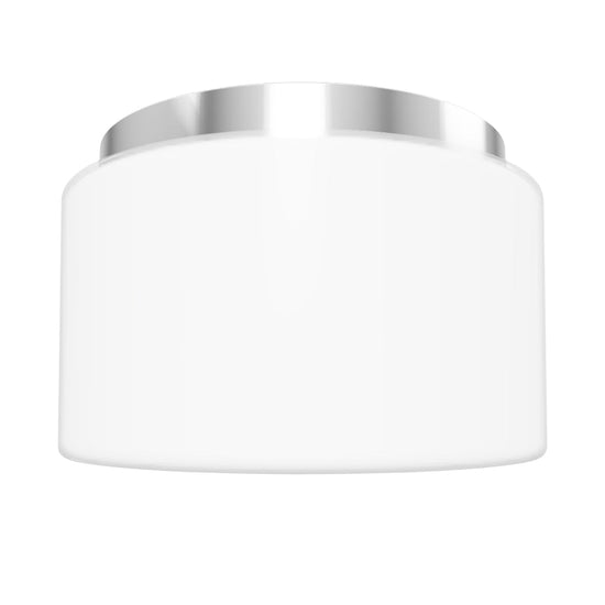 Deckenzylinder aus Opalglas auf Chrombasis für feuchte Umgebungen.