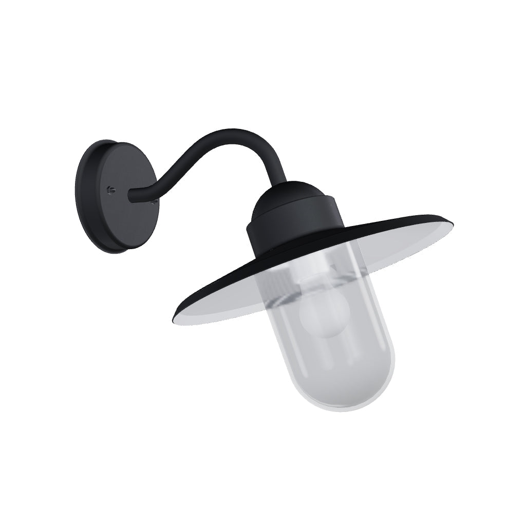 Retro Außenwandlampe mit Klarglasschirm für Glühbirne mit E27 Fassung.