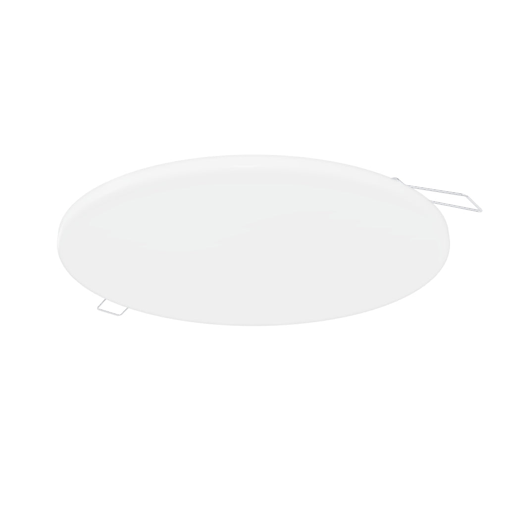 Rahmenloser Einbau-Downlight mit leicht gewölbtem, satiniertem Acryl-Diffusor. Geeignet für feuchte Umgebungen.
