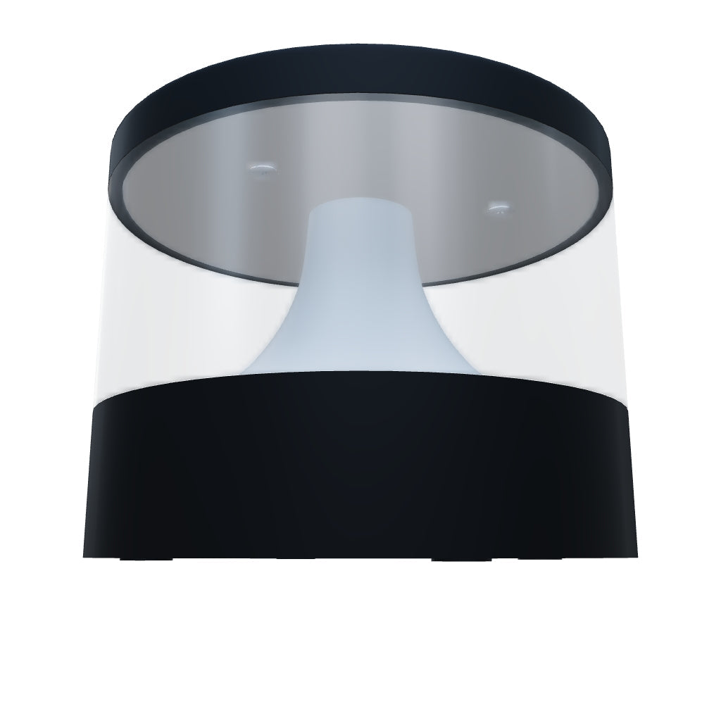 Aufbau-LED-Leuchte für den Außenbereich mit weicher, gleichmäßiger Lichtverteilung zur Seite.