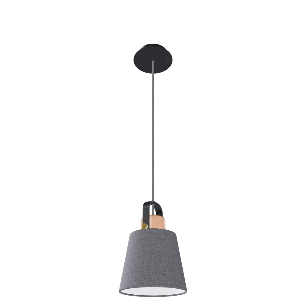 Textil-Pendelleuchte mit Holzzubehör für LED-Leuchtmittel mit E27-Sockel.
