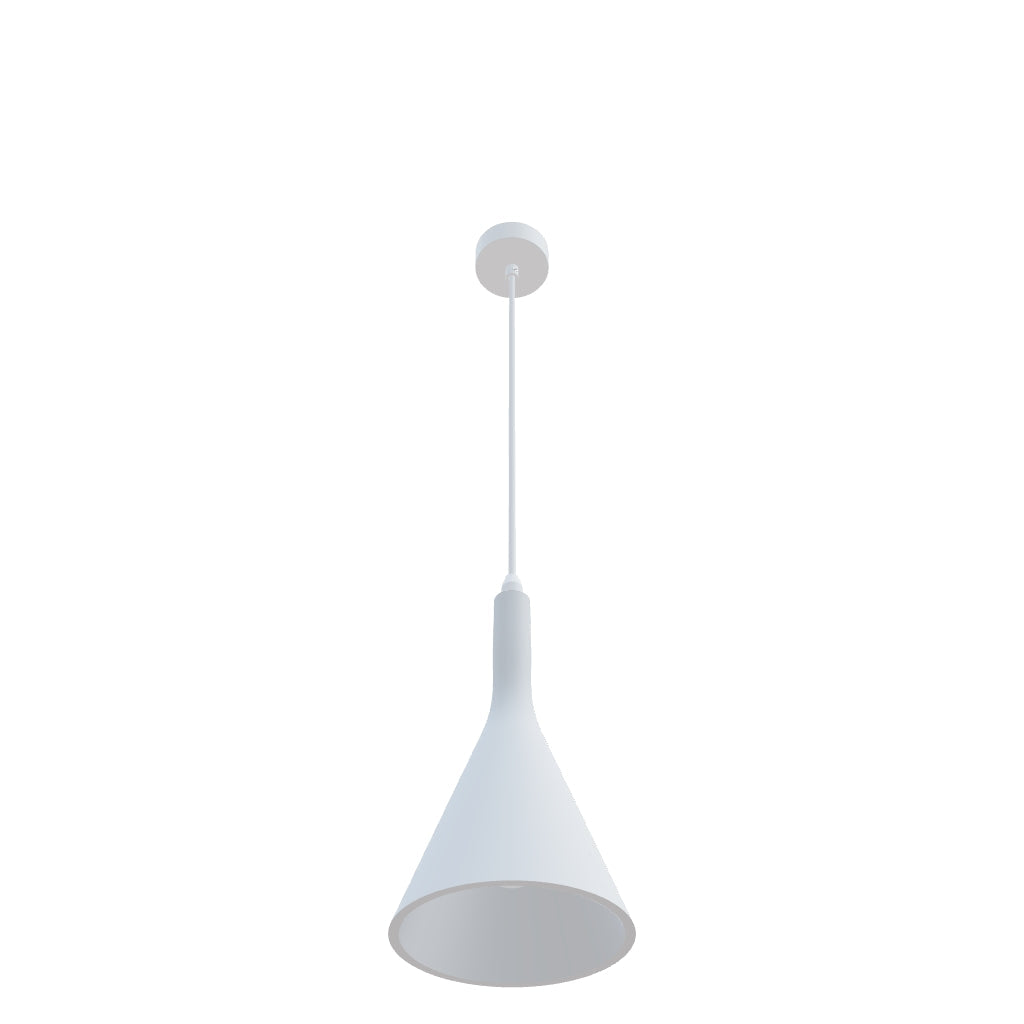 Pendelleuchte aus Gips für Lichtquelle mit E27 Fassung. Deckenbasis ist aus weißlackiertem Metall. Die Leuchte lässt sich mit Interieurfarben überstreichen.