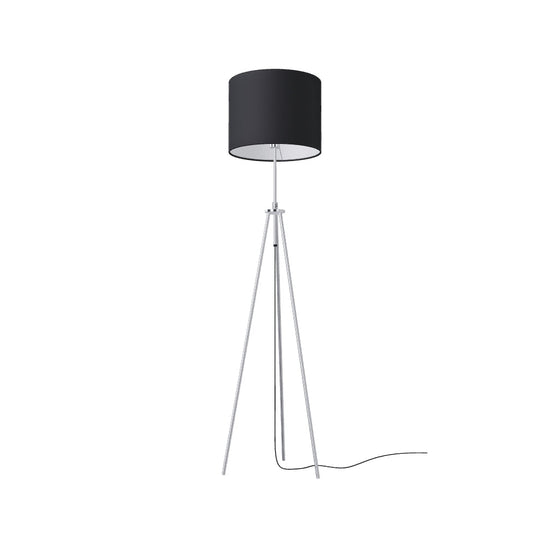 Stehleuchte mit Textil-Lampenschirm und höhenverstellbarem Stativ mit E27 Fassung.