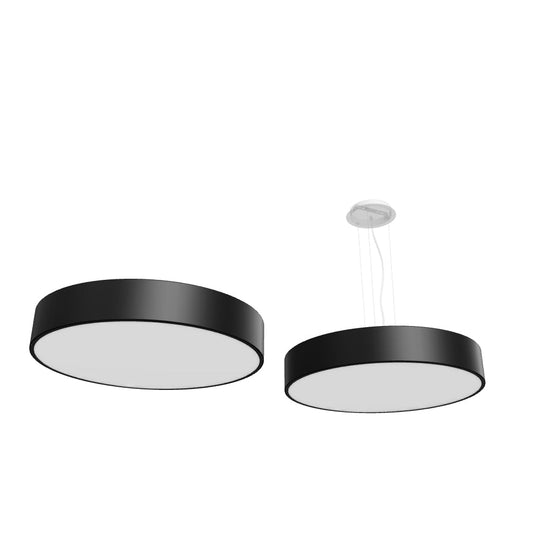 LLED-Deckenleuchte mit lackiertem Aluminiumrahmen. Die Leuchte wird mit einem Diffusor aus milchigem Polykarbonat. Mit Hilfe des Aufhängesets kann sie als Pendelleuchte verwendet. Dimmbar: TRIAC.