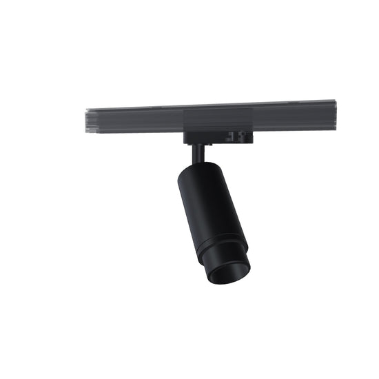 Zylinderförmige Deckenleuchte für eine 3-Phasen-Stromschiene mit Anpassungsmöglichkeit des Lichtkegels durch ein Zoom System 10-50°. Die Leuchte ist für LED Lichtquellen mit einem GU10-Fassung geeignet. Benutzen sie Lichtquellen mit einem Abstrahlwinkel von 120°, um ungewünschte Schatten zu verhindern.