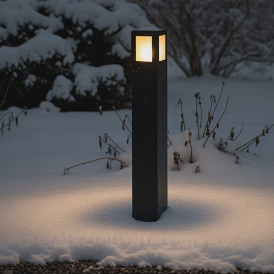 Außenstehleuchte für sparsame Lichtquelle mit E27 Fassung. Schirme aus satiniertem Glas.
