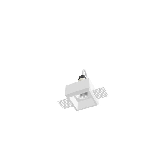 Quadratische Einbauleuchte aus Gips, rahmenlos, nur zur Montage in Gipskartondecken. Die Leuchte lässt sich mit Interieurfarben überstreichen.