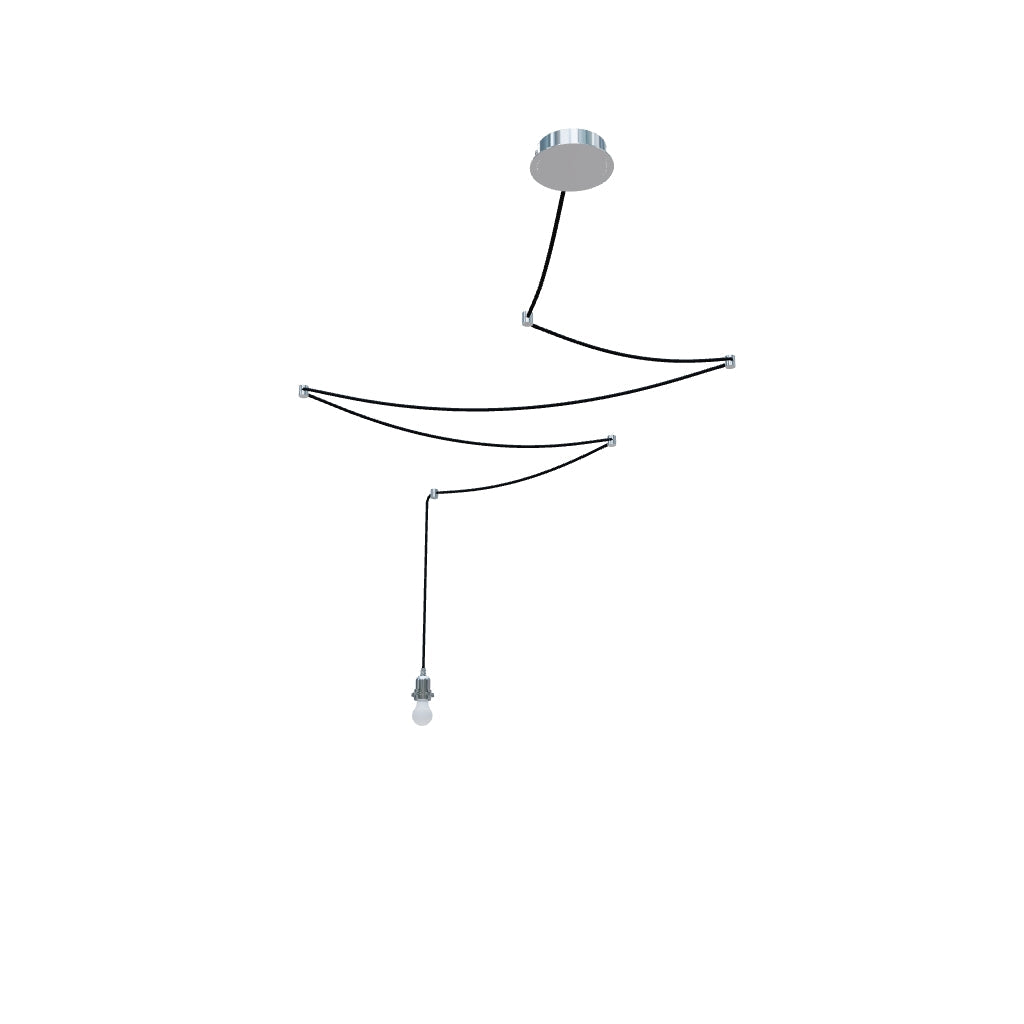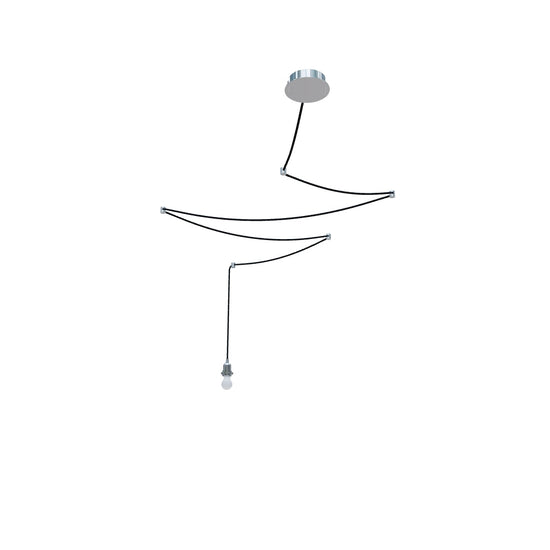 Variables Set, geeignet für den eigenständigen Gebrauch mit Designer-Glühbirne oder Aufhängung von leichten Schirmen. Das Set kann mit Griffen an einem schwarzen Textilkabel an der Decke oder an der Wand befestigt werden. Das Set enthält 4 schwarze Kunststoffgriffe oder 4 Chromgriffe. Griffe können auch separat bestellt werden. Geeignet für Schirme: ARISTA, ASPRO, DOUBLE, JAKARANDA, RON.