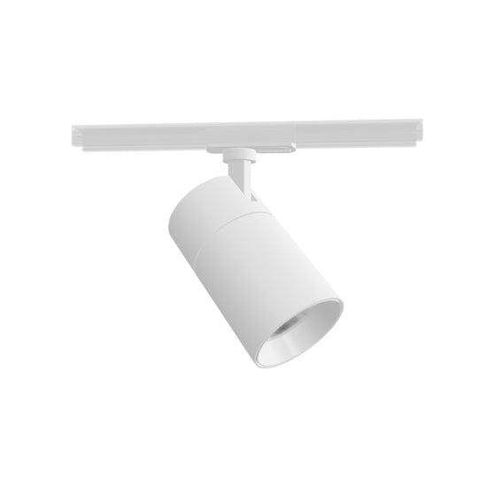 Dimmbare zylinderförmige Leuchte ffür 1-Phasen-Stromschiene mit Einstellmöglichkeit der Lichtfarbe: warmweiss (WW), neutralweiss (NW), kaltweis (CW). Dimmbar: TRIAC.