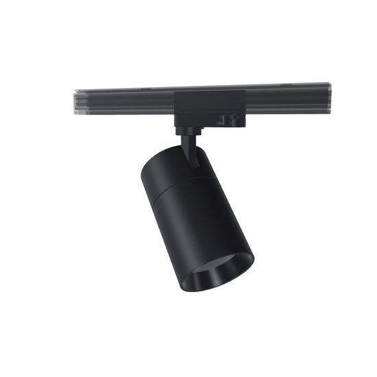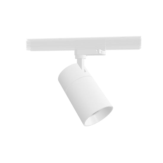 Dimmbare zylinderförmige Leuchte für eine 3-Phasen-Stromschiene mit Einstellmöglichkeit der Lichtfarbe: warmweiss (WW), neutralweiss (NW), kaltweis (CW). Dimmbar: TRIAC.